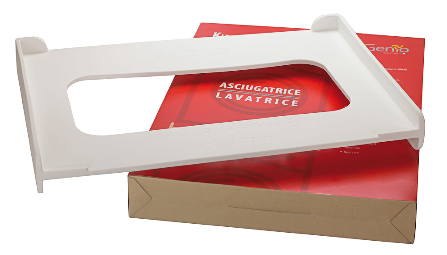 DESCRIZIONE ECOMMERCE KIT DI SOVRAPPOSIZIONE SLIM LAVATRICE-ASCIUGATRICE – CONF. 1 SUPPORTO + 1 CINGHIA, Tipo di prodotto KIT DI SOVRAPPOSIZIONE SLIM LAVATRICE-ASCIUGATRICE – CONF. 1 SUPPORTO + 1 CINGHIA Realizzato per sovrapporre l’asciugatrice slim alla lavatrice slim senza dover forare o utilizzare viti in modo da non compromettere la validità della garanzia dello stesso elettrodomestico. Universale e adatto a tutti gli elettrodomestici 60×45 cm. Struttura in poliuretano resistente che rende l’elettrodomestico fermo e stabile assorbendo vibrazioni e riducendo il rumore (fonoassorbente). Evita l’usura e protegge gli elettrodomestici eliminando ogni possibilità d’attrito. Il kit di sovrapposizione ridotto iGenio è una guarnizione ottimale per la tua lavatrice. Inclusa cinghia di sicurezza di 5 metri con fibbia in metallo, Descrizione prodotto KIT DI SOVRAPPOSIZIONE SLIM LAVATRICE-ASCIUGATRICE – CONF. 1 SUPPORTO + 1 CINGHIA Realizzato per sovrapporre l’asciugatrice slim alla lavatrice slim senza dover forare o utilizzare viti in modo da non compromettere la validità della garanzia dello stesso elettrodomestico. Universale e adatto a tutti gli elettrodomestici 60×45 cm. Struttura in poliuretano resistente che rende l’elettrodomestico fermo e stabile assorbendo vibrazioni e riducendo il rumore (fonoassorbente). Evita l’usura e protegge gli elettrodomestici eliminando ogni possibilità d’attrito. Il kit di sovrapposizione ridotto iGenio è una guarnizione ottimale per la tua lavatrice. Inclusa cinghia di sicurezza di 5 metri con fibbia in metallo, Caratteristiche prodotto ISTRUZIONI D’USO: Il kit di sovrapposizione ridotto, va appoggiato sopra la lavatrice slim allineando i due angoli posteriori del kit ai due angoli posteriori (superiori) della lavatrice. Una volta appoggiato il Kit di Sovrapposizione slim sopra la Lavatrice, controllate che la scritta LATO SUPERIORE risulti verso l&rs