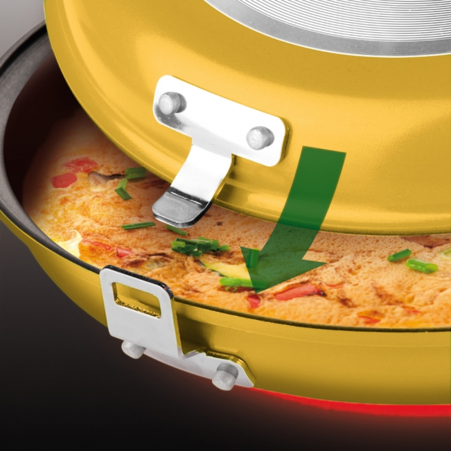 TESCOMA 594346 PADELLA DOPPIA GIRAFRITTATA ø 26 CM "PRESTO" Padella doppia ideale per cuocere facilmente e velocemente gli alimenti da entrambi i lati. Adatta per preparare tortillas, omelettes, frittate, verdure, ecc. Le due padelle possono essere utilizzate anche separatamente. Provvista di un rivestimento antiaderente di alta qualità che previene l'attaccamento dei cibi sul fondo. Adatta per essere utilizzata su piano cottura elettrico, a gas e vetroceramica. Lavabile in lavastoviglie.