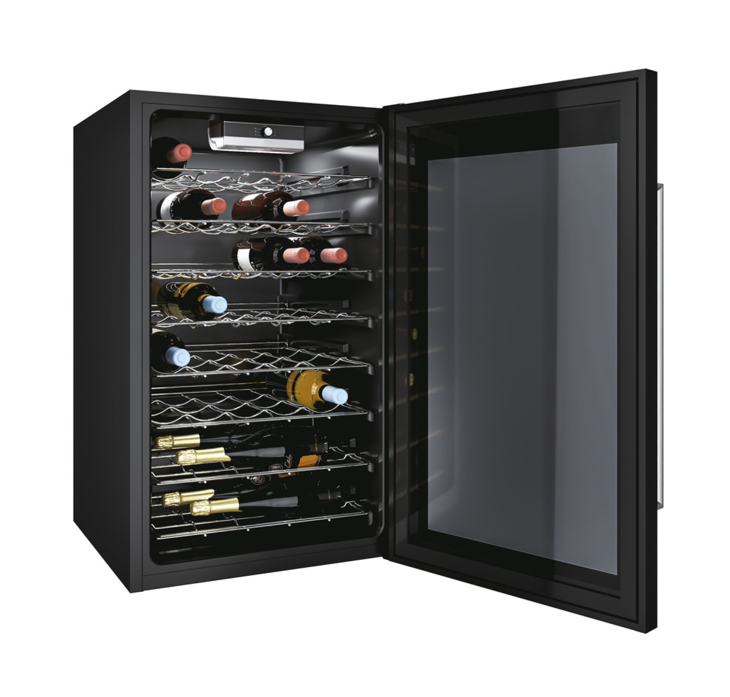 DiVino CWC 150 ED/N Cantinetta vino con compressore Libera installazione Nero 41 bottiglia/bottiglie, Capacità (bottiglie) 41,000, Numero di Zone 1,000, Regolazione temperatura interna (°C) 7 - 18, Categoria Apparecchio destinato esclusivamente alla conservazione del vino, Nuova Classe efficienza energetica G, Classe emissione rumore C