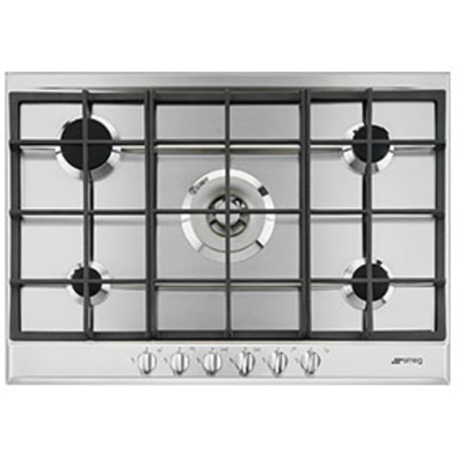 Largh. piano (cm) 70, Numero di zone cottura 5,000, Posizione manopole Frontali, Materiale del piano Inox, Valvola di sicurezza Gas Sì, Numero totale di fuochi 5,000, Numero doppia corona 1,000